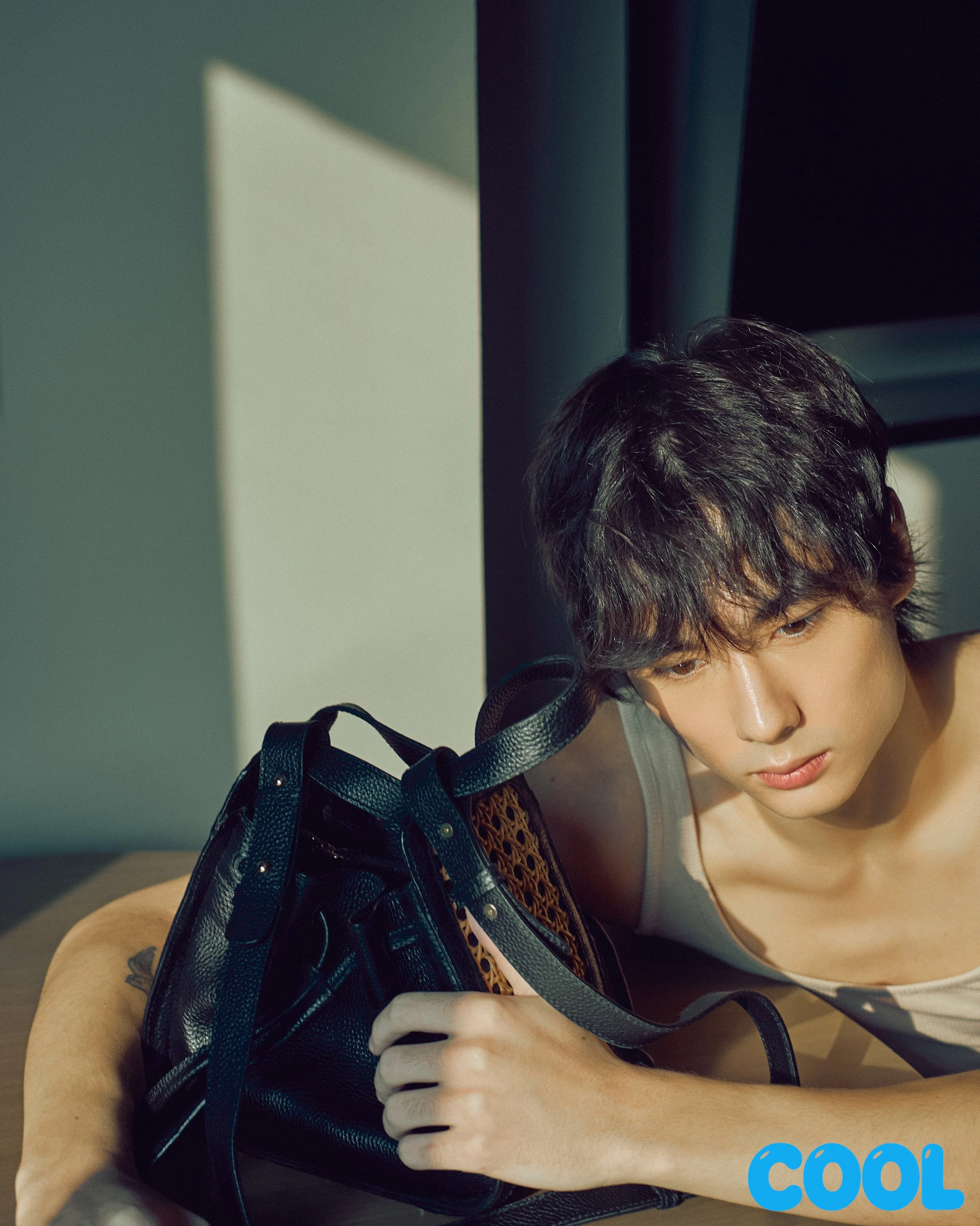 This vision comes to life in this COOL Magazine fashion editorial shot at Crowne Plaza Galleria, where a summer setting is reimagined through cool tones and soft sunset hues, highlighting the richness of the designs. Modeled by Eugene Reggio, the visuals emphasize restraint and precision, allowing the bags’ form and craftsmanship to stand out—positioning them not just as accessories, but as cultural pieces and wearable works of art.